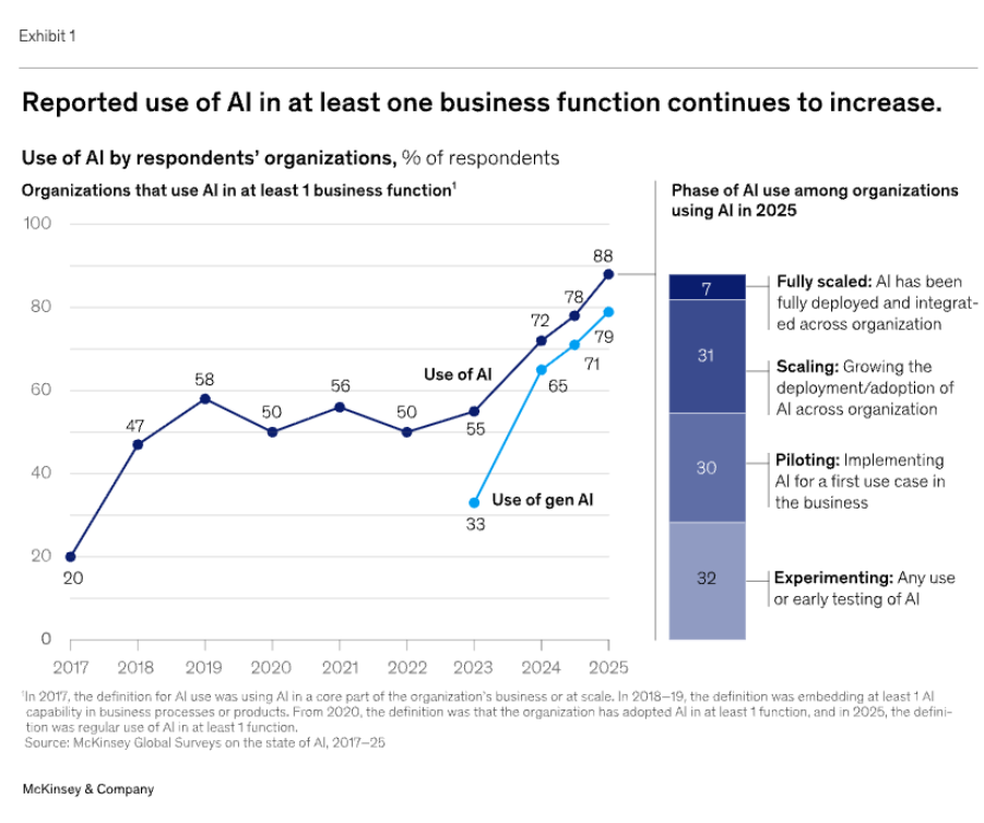 McKinsey & Company (2025), The State of AI in 2025: Agents, Innovation and Transformation.